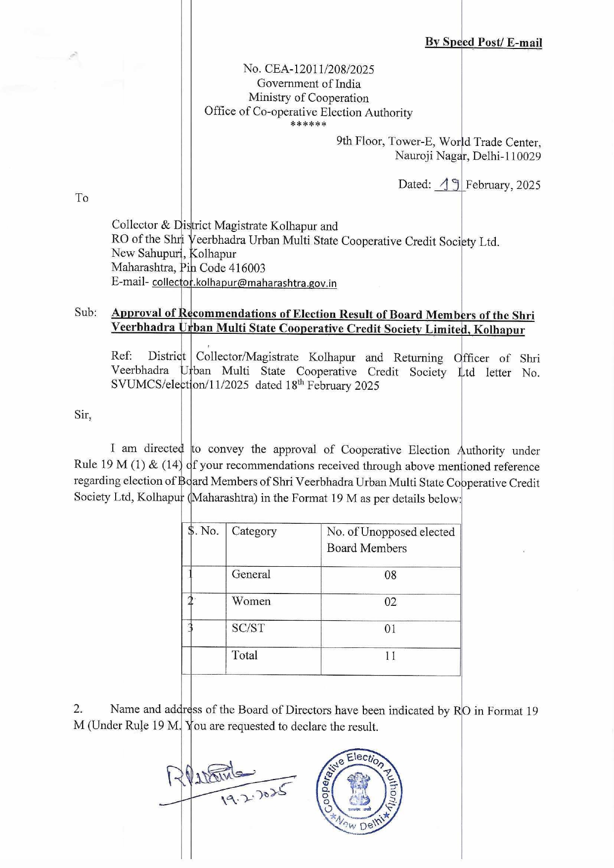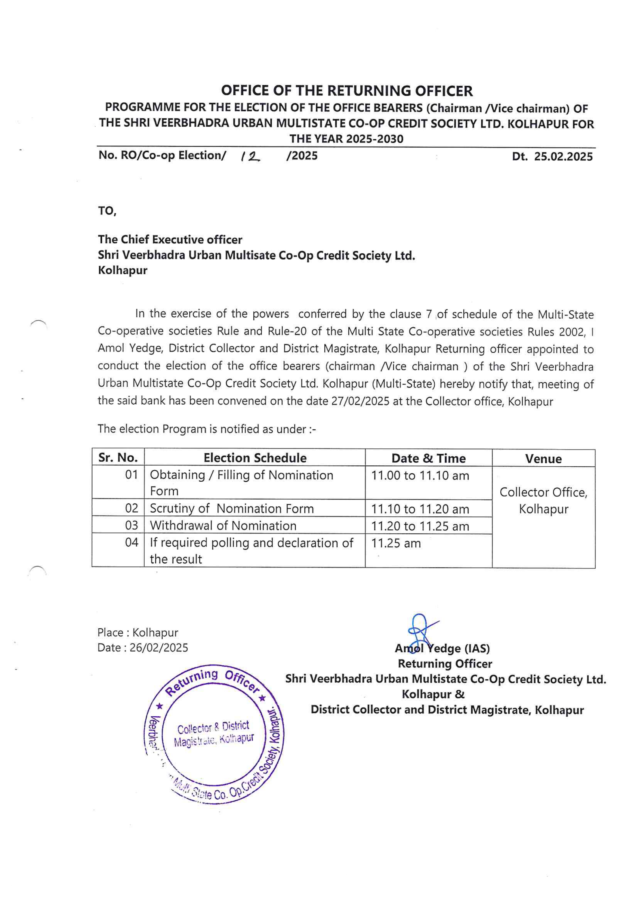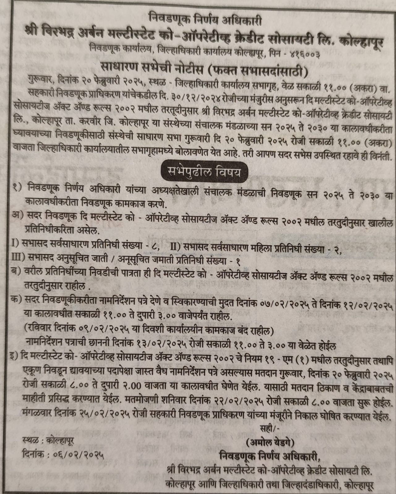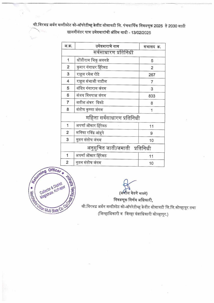 छाननी नंतरची उमेदवार यादी दि. 13.02.2025