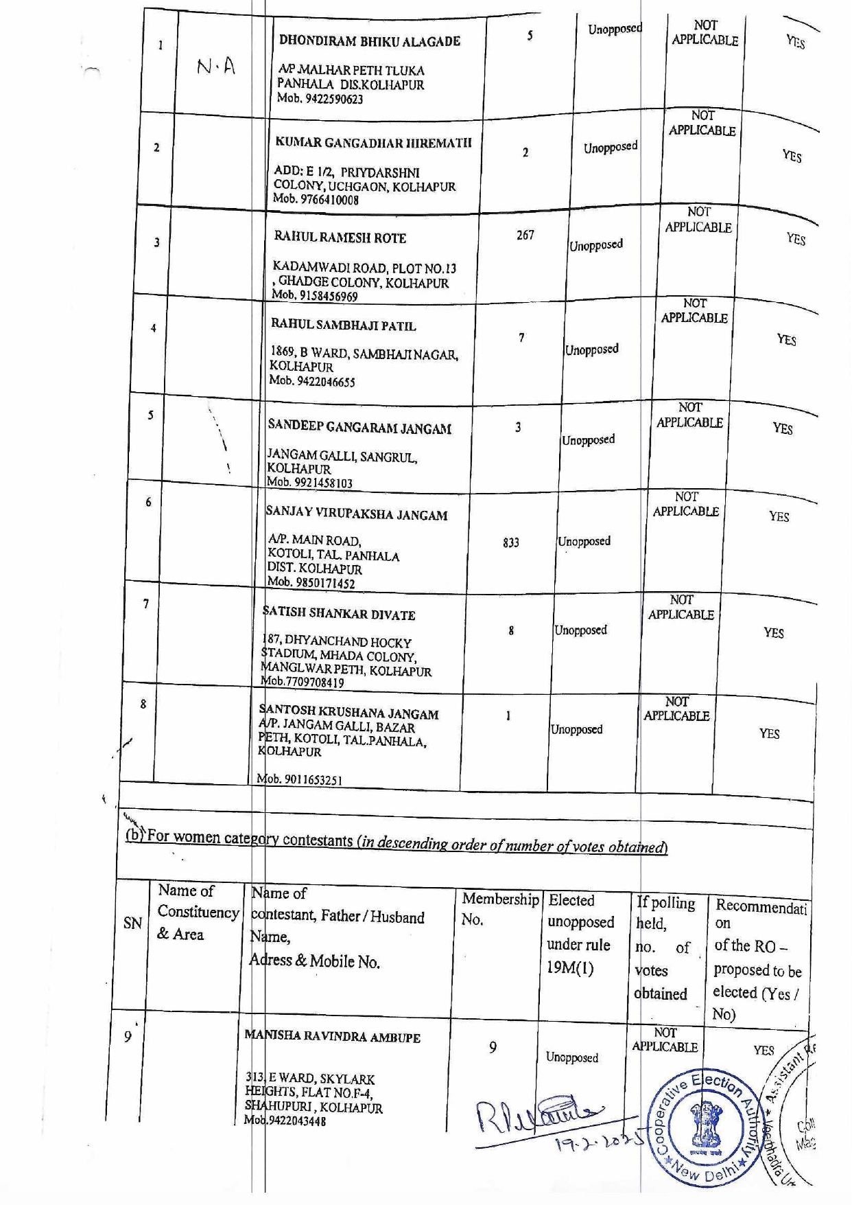 उमेदवार यादी दि. 12.02.2025